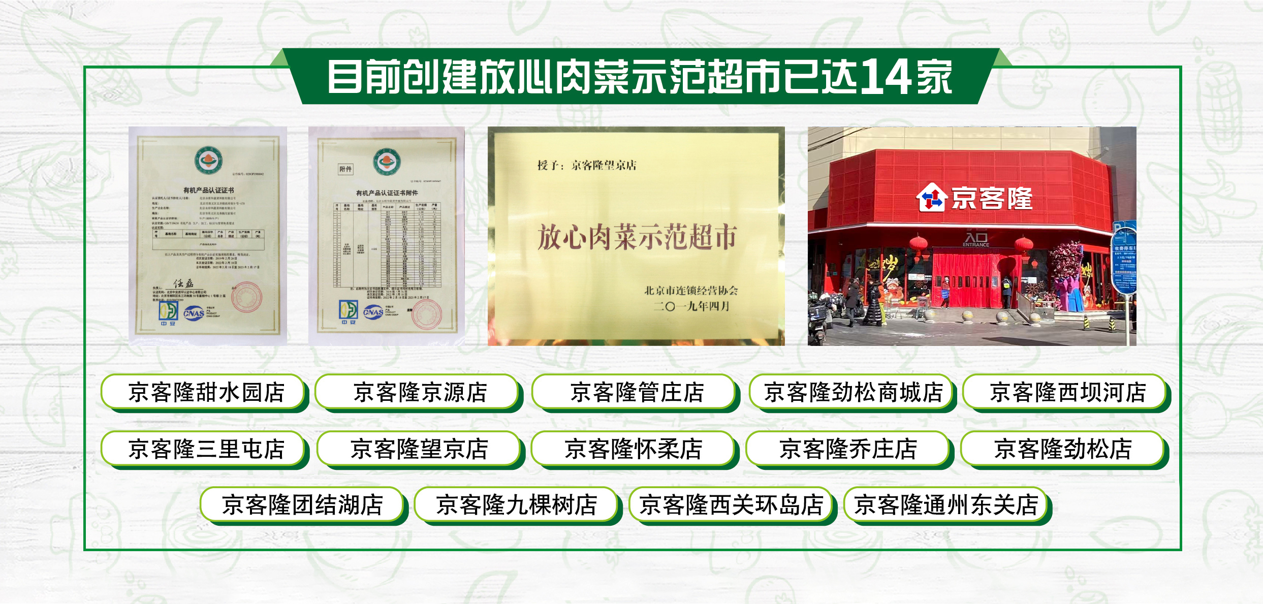 为严格落实我公司食品安全主体责任,加强肉菜等食用农产品质量安全管理,为消费者提供质量安全的肉菜,按照北京市连锁经营协会开展创建“放心肉菜示范超市”活动的相关要求,我公司将持续参与放心肉菜示范超市创建活动。