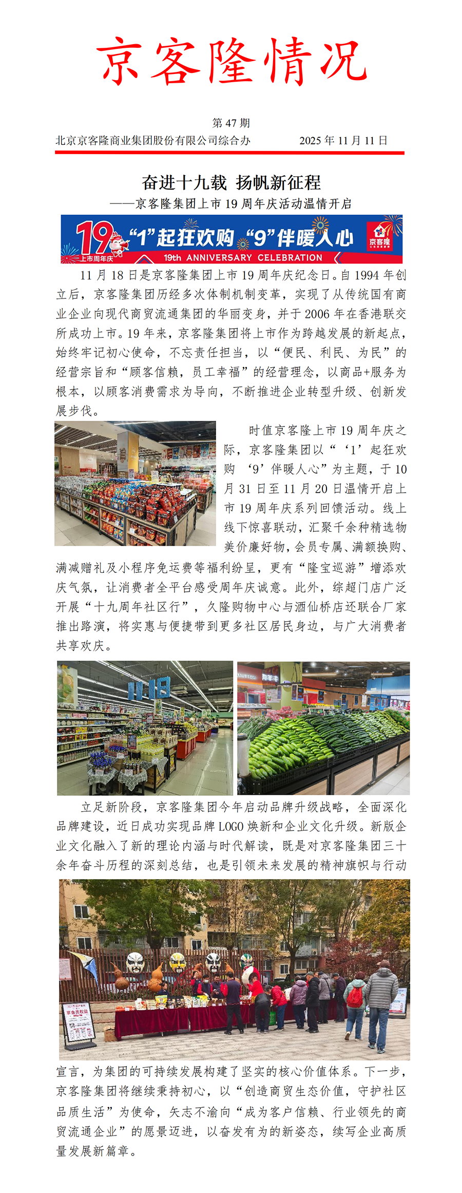 奋进十九载 扬帆新征程 ——京客隆集团上市19周年庆活动温情开启