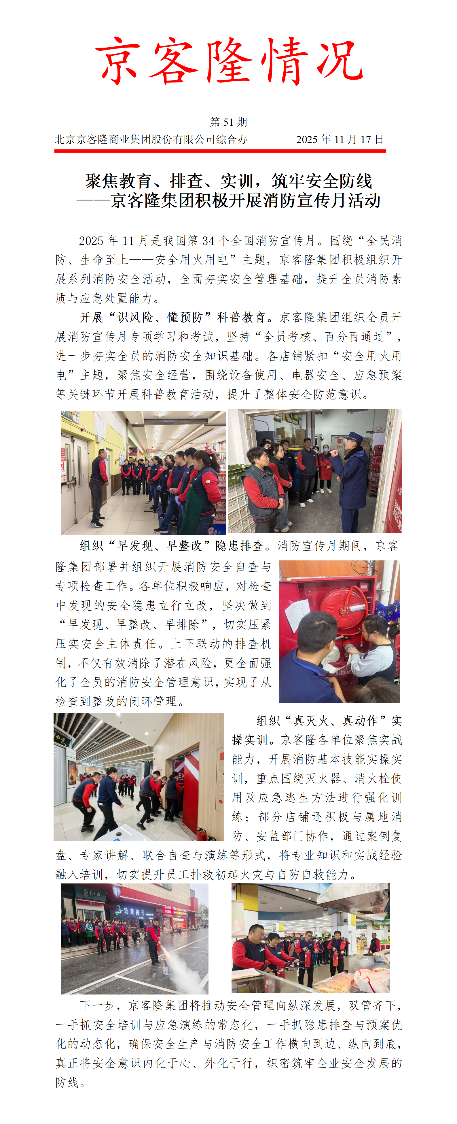 聚焦教育、排查、实训,筑牢安全防线 ——京客隆集团积极开展消防宣传月活动