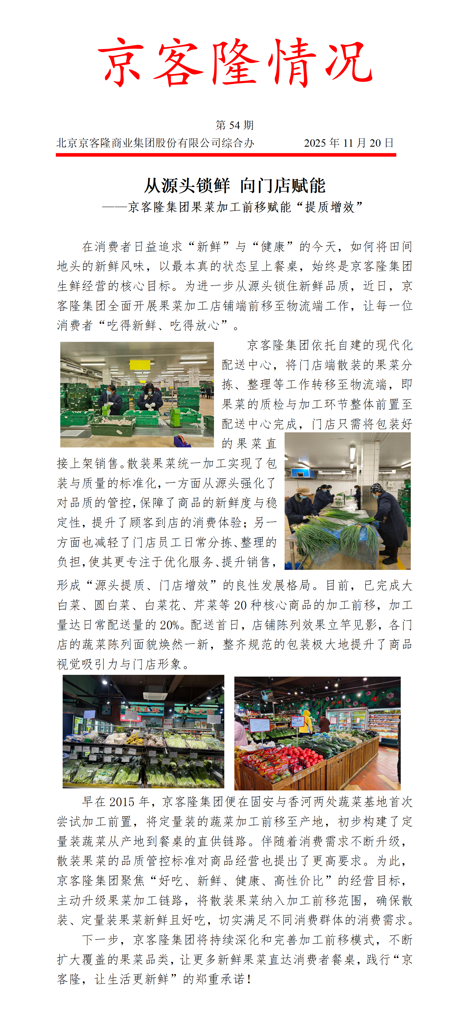 从源头锁鲜 向门店赋能 ——京客隆集团果菜加工前移赋能“提质增效”