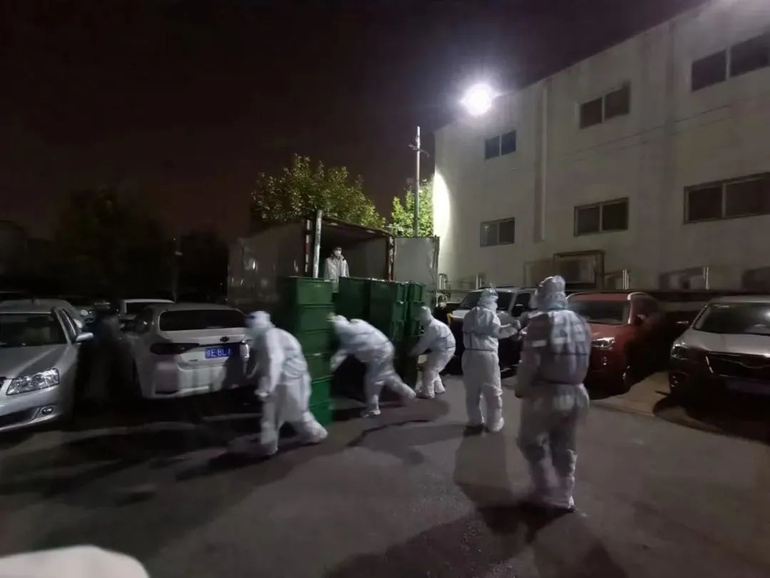 11月初,京客隆集团接到上级保障任务,为东坝、安贞、金盏、望京地区的部分保障点位配送物资。京客隆生鲜配送中心连夜完成“暖心包”的准备工作,集团提供人力支援,生鲜配送提供运力支持,保供应急小组第一时间与各街乡保障点负责人取得联系,用最快的速度将物资送抵至指定楼门前,将保供“接力棒”交到分发物资的社区人员手中。