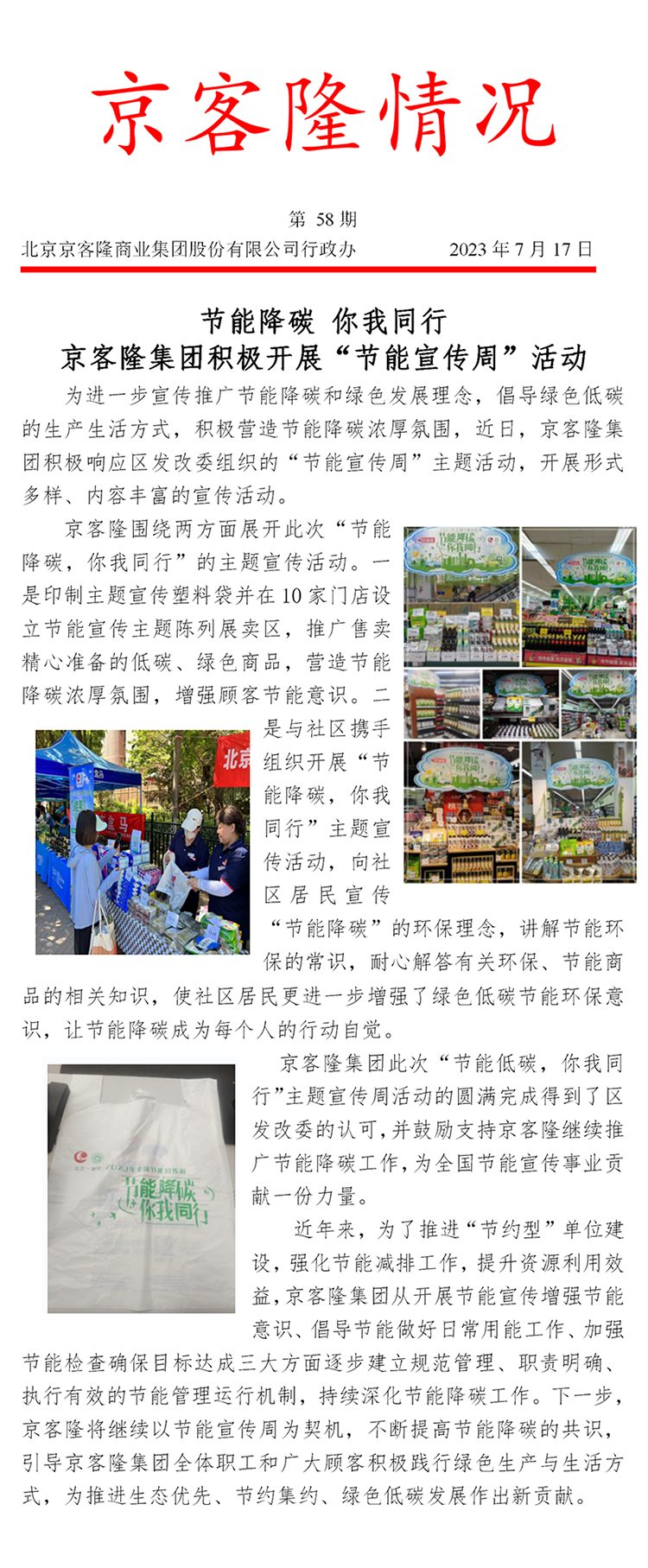 节能降碳 你我同行 京客隆集团积极开展“节能宣传周”活动