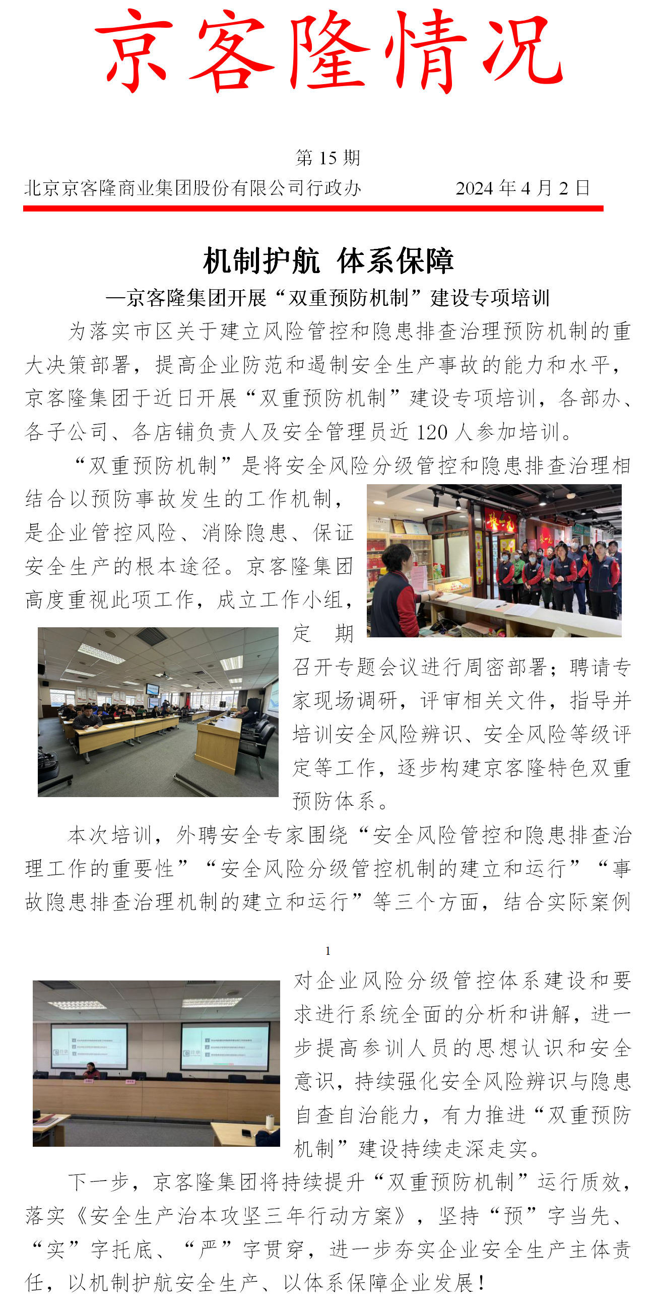 机制护航 体系保障 —京客隆集团开展“双重预防机制”建设专项培训