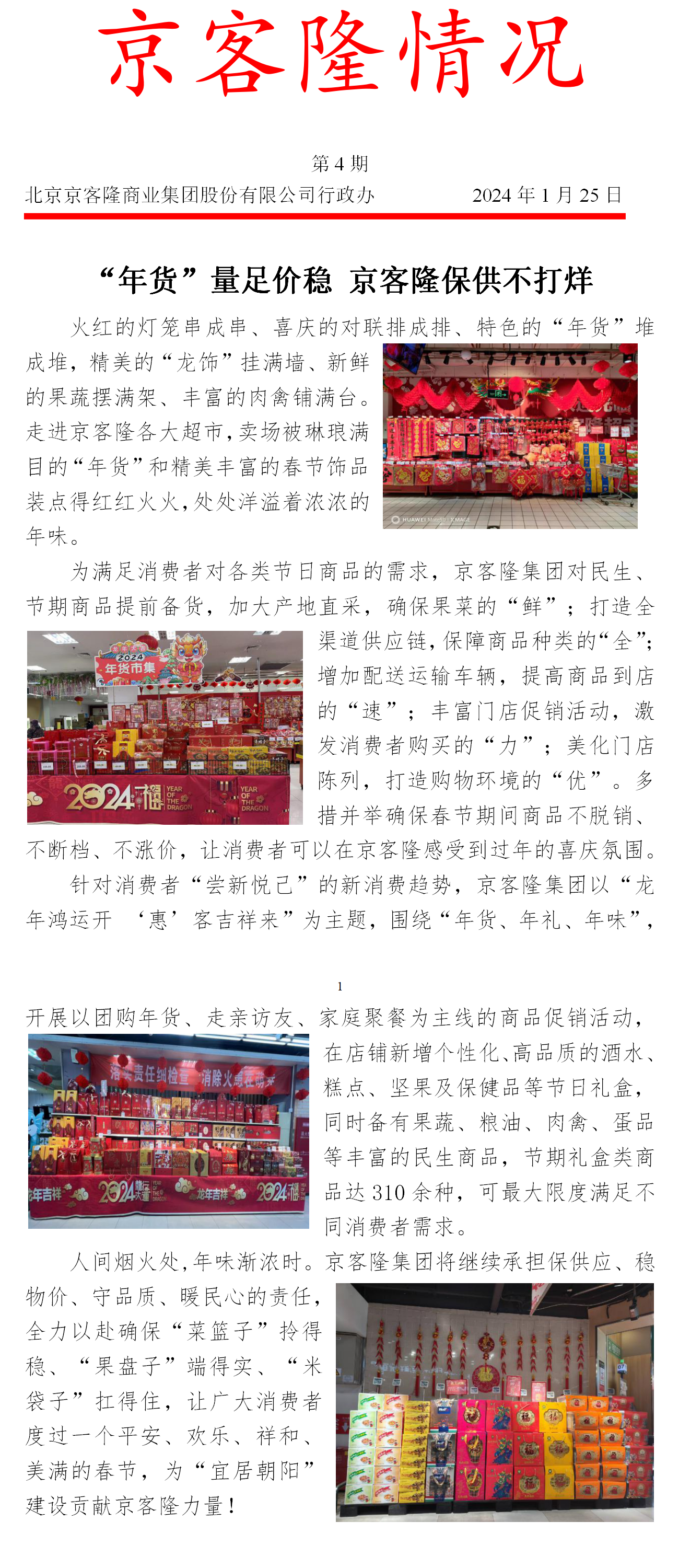 京客隆2024年春节期间门店营业时间