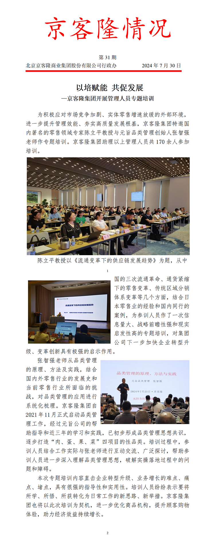 以培赋能 共促发展 —京客隆集团开展管理人员专题培训