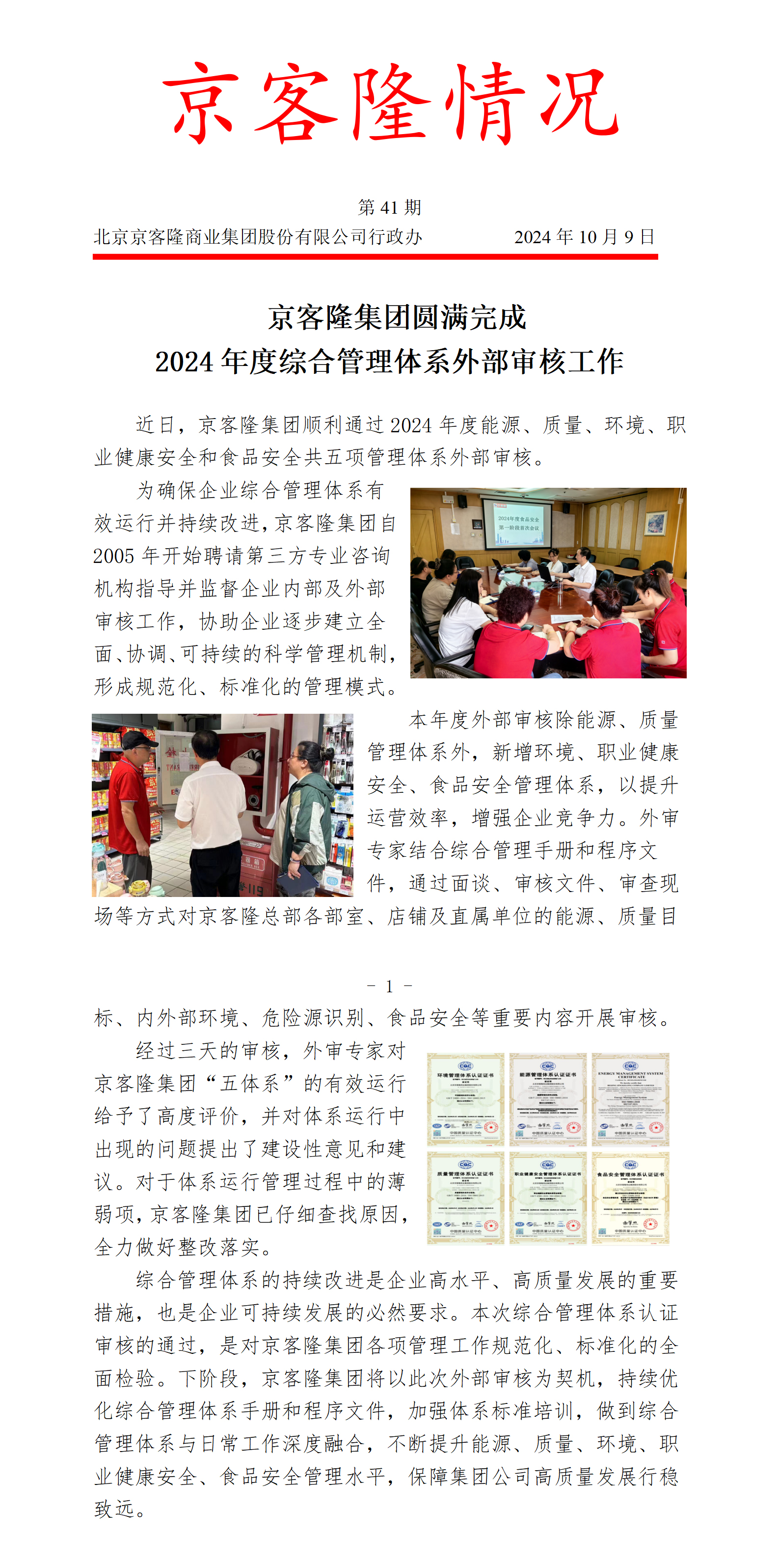 京客隆集团圆满完成 2024年度综合管理体系外部审核工作
