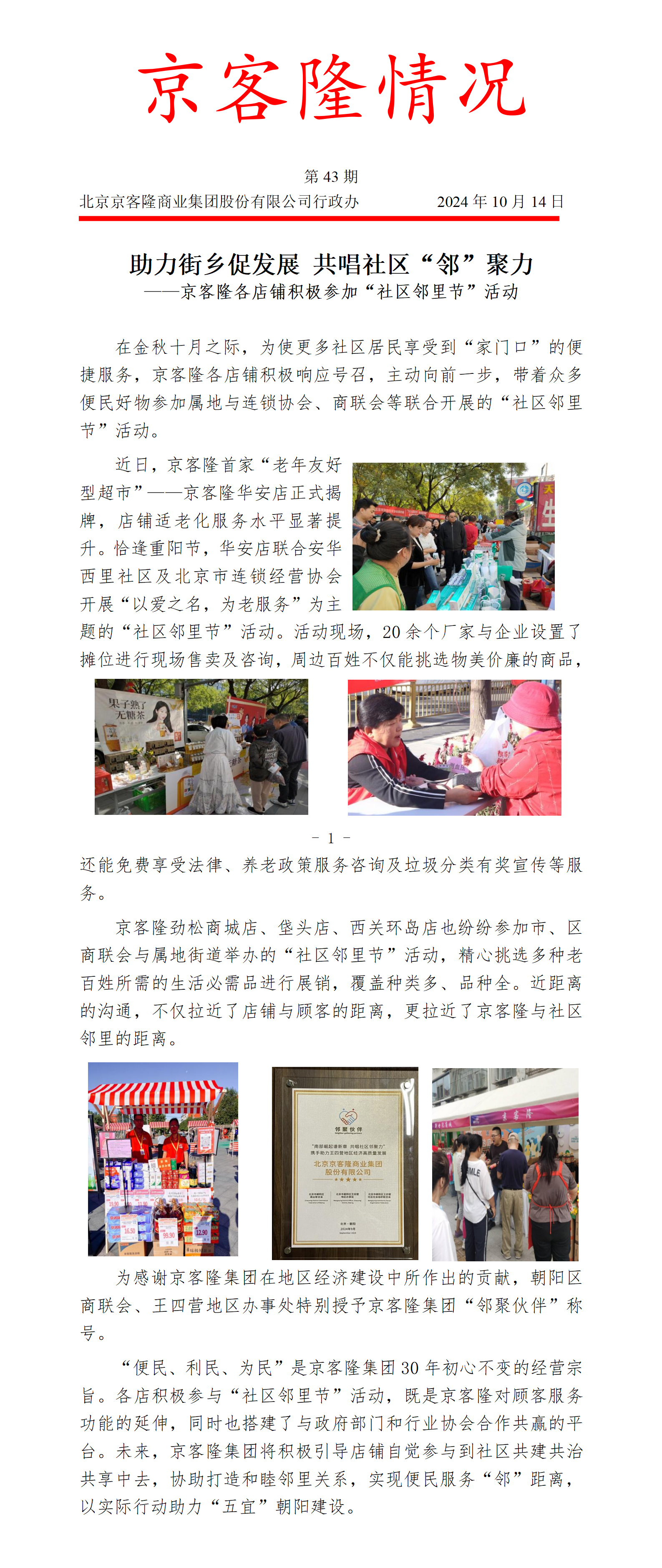 助力街乡促发展 共唱社区“邻”聚力 ——京客隆各店铺积极参加“社区邻里节”活动
