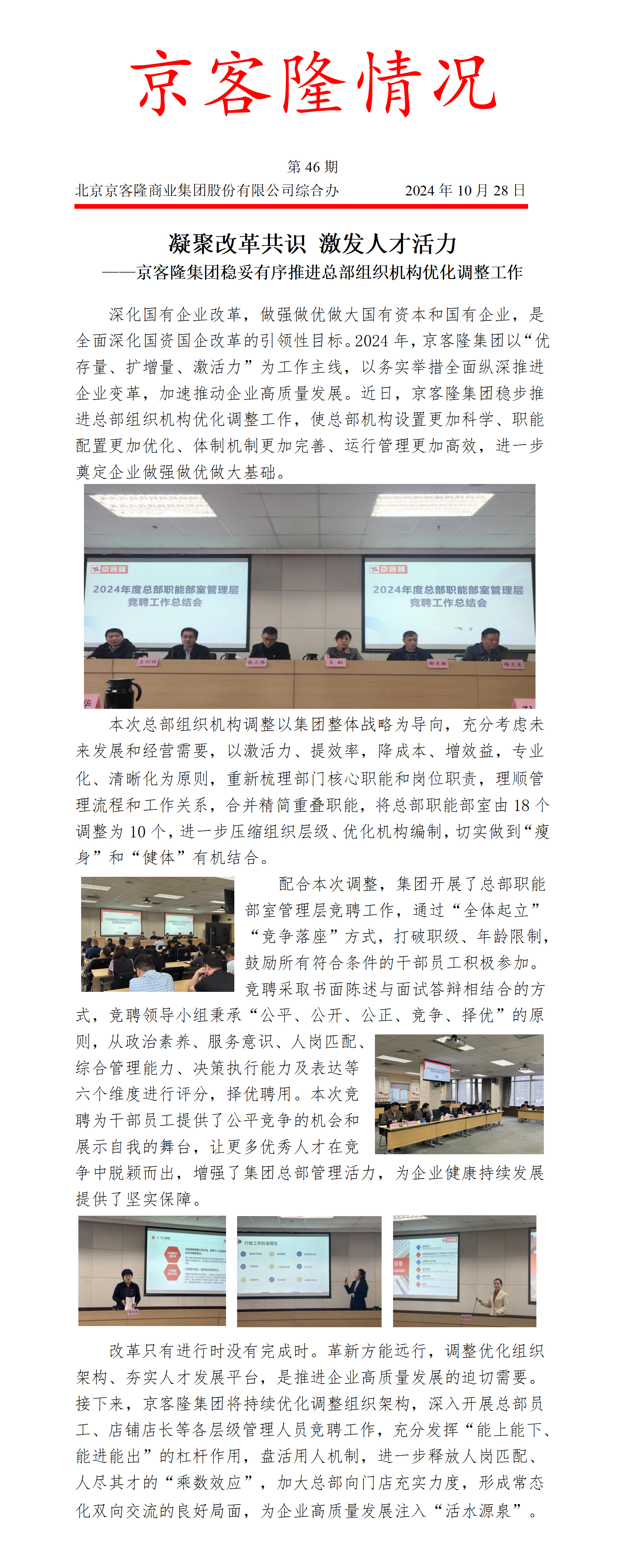 凝聚改革共识 激发人才活力 ——京客隆集团稳妥有序推进总部组织机构优化调整工作