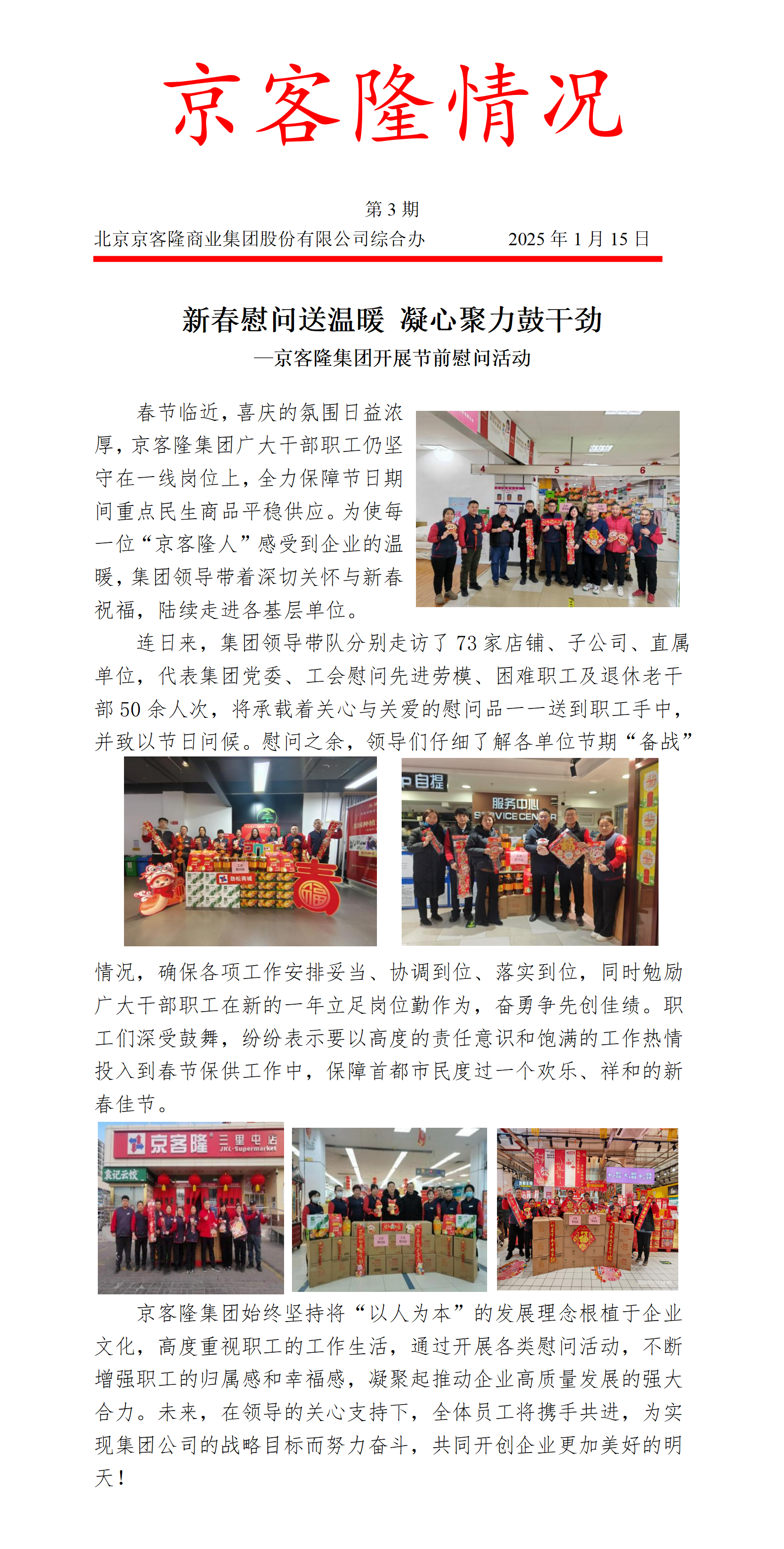 新春慰问送温暖 凝心聚力鼓干劲——京客隆集团开展节前慰问活动